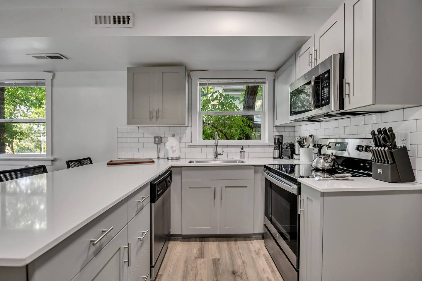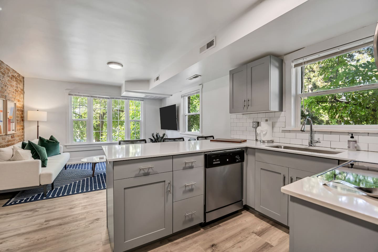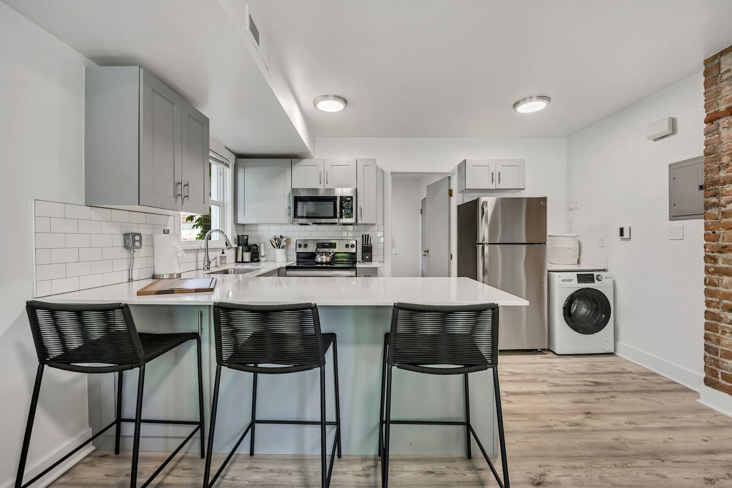 Highlights: exposed-brick character, easy self check-in, A/C, and a true queen bed plus a pullout sleeper (sleeps 4). The space You’ll have the entire apartment to yourself, set up for easy stays and great sleep. Inside you’ll find: 1 bedroom + 1 bathroom Sleeps up to 4 (ideal for 1–2; comfortable for 3–4 with the sleeper sofa) Bedroom with Queen bed Living room with pullout sleeper sofa Keypad self check-in (24/7) In-unit washer/dryer combo Full kitchen for simple meals + coffee at home A/C for warm days Washer/dryer combo in the unit for light laundry during your stay Parking (read this before arrival) Optional reserved garage parking is available for $20/night (optional add-on) Street parking may be available nearby but isn’t guaranteed—please follow posted restrictions Location Walkable downtown location near dining, shopping, and major attractions—most highlights are an easy walk or quick ride-share. Other things to note No parties or events Pets are welcome, but please keep them off furniture and out of beds Quiet hours are respected (not a party spot)
