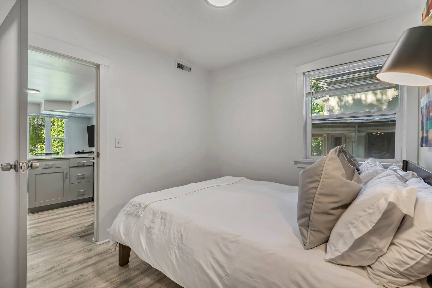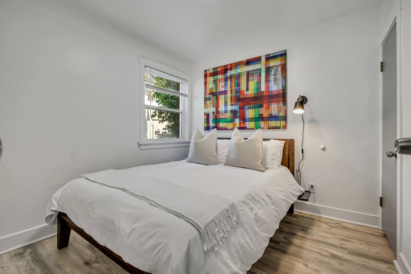 This Lake City Flats (LCF) listing is a renovated historic 1BR/1BA in Downtown SLC with A/C, in-unit washer/dryer combo, and keypad self check-in. Sleeps 4 with a queen bed + pullout sofa. Reserved garage parking available for $20/night.