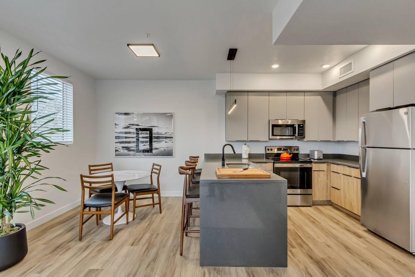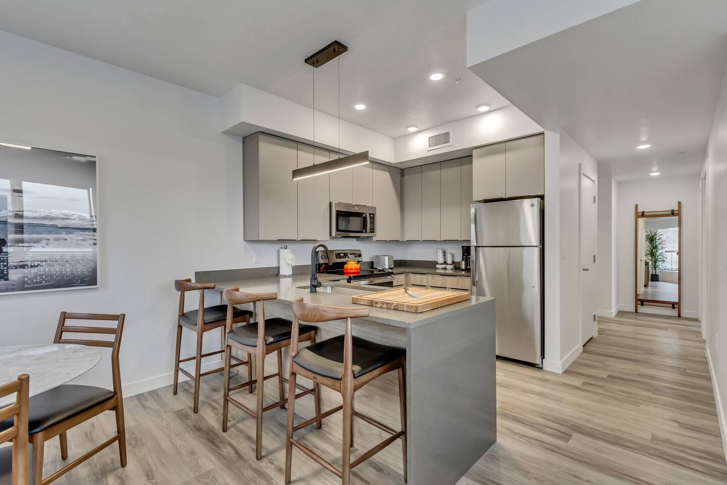 Enjoy a stylish experience at this centrally-located penthouse including a purpose built Co-working lobby! Located right between Salt Lake City’s exciting Sugarhouse + Granary Districts, Liberty-Wells, and Central City, this penthouse apartment is the perfect place to explore downtown Salt Lake City and not far from skiing, biking, and hiking. Close to everything, light rail adjacent and walkable to Sugarhouses many restaurants, shopping, bars, breweries, nightlife, plus free garage parking.