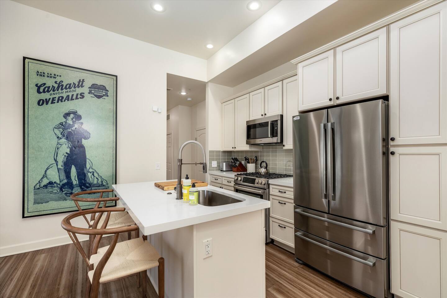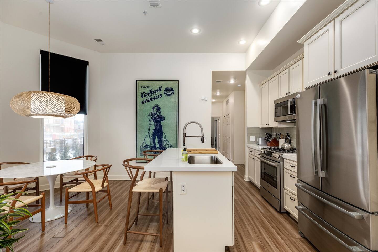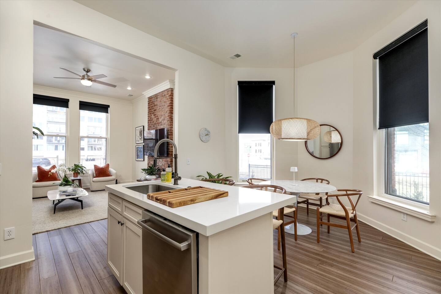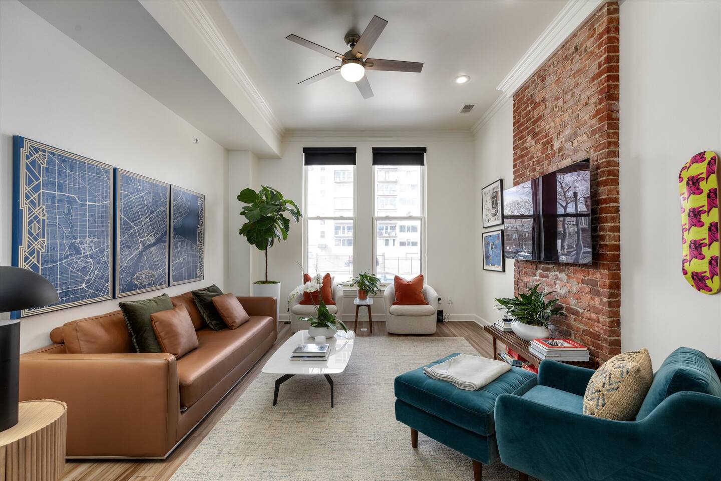 As you step inside, you'll be swept away by the distinguished design and stunning details throughout the home. From the ornate crown molding to the chandeliers, no expense was spared in restoring this storied estate back to its original splendor. Enjoy curated art throughout the space, watch the busy streets of Detroit through story-high windows, or lounge in front of the multiple TVs with free streaming services. The gourmet kitchen is fully-equipped with everything you need to prepare a delicious meal, or dine across the street at the famous Bar Pigalle.