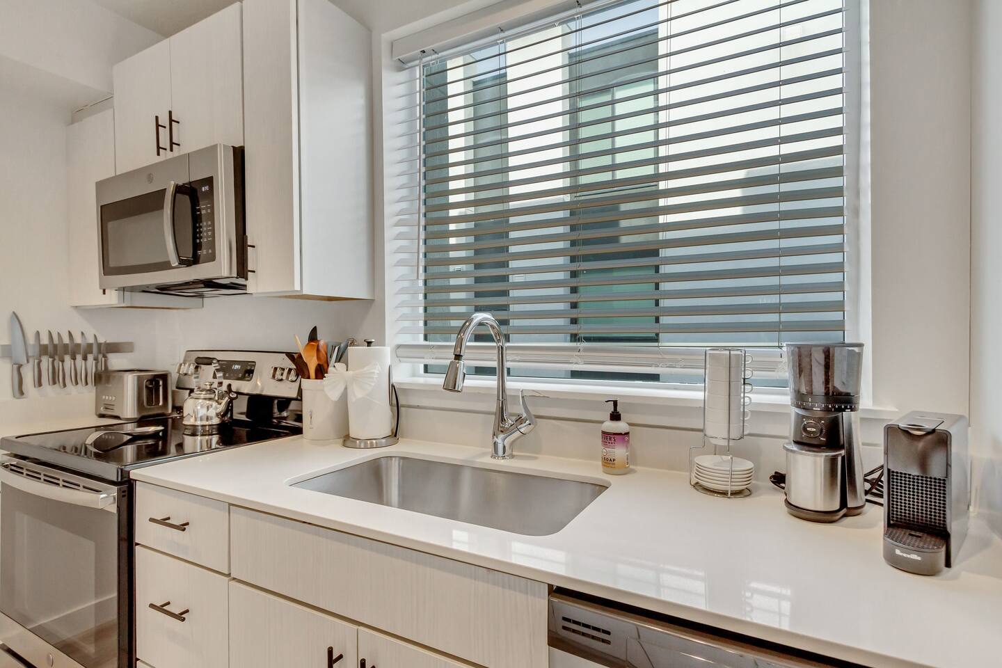 Private ensuite bathrooms, a spacious garage, and incredibly central, this place makes for the perfect getaway. Take advantage of the flowing layout and relax among mid-century modern decor and curated art specially selected for the space. Enjoy complimentary high-end coffee, exquisite sheets, and embrace an oasis away from home.